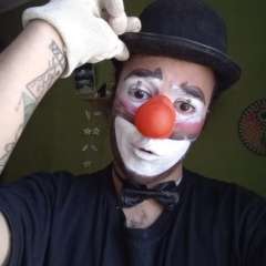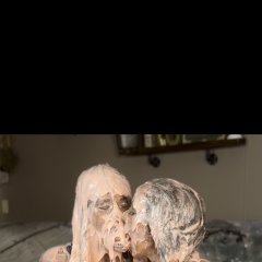 Michiganpie1 was surprised by SeymourTheClown with a big sloppy cream pie to the face
