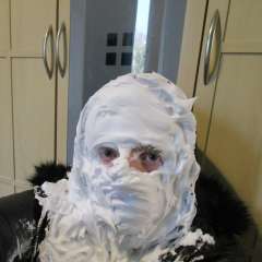 PieDaddy was surprised by latherface with a big sloppy cream pie to the face