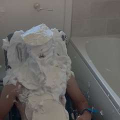 Winston40 was plunged into a dunk tank of shaving cream after the target was hit by michiganpie1